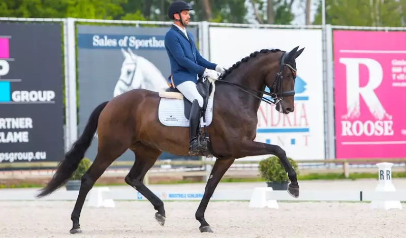 Before he was educated and ridden by Amandine Prevost untill Dressurstall Herman Zagers bought him.